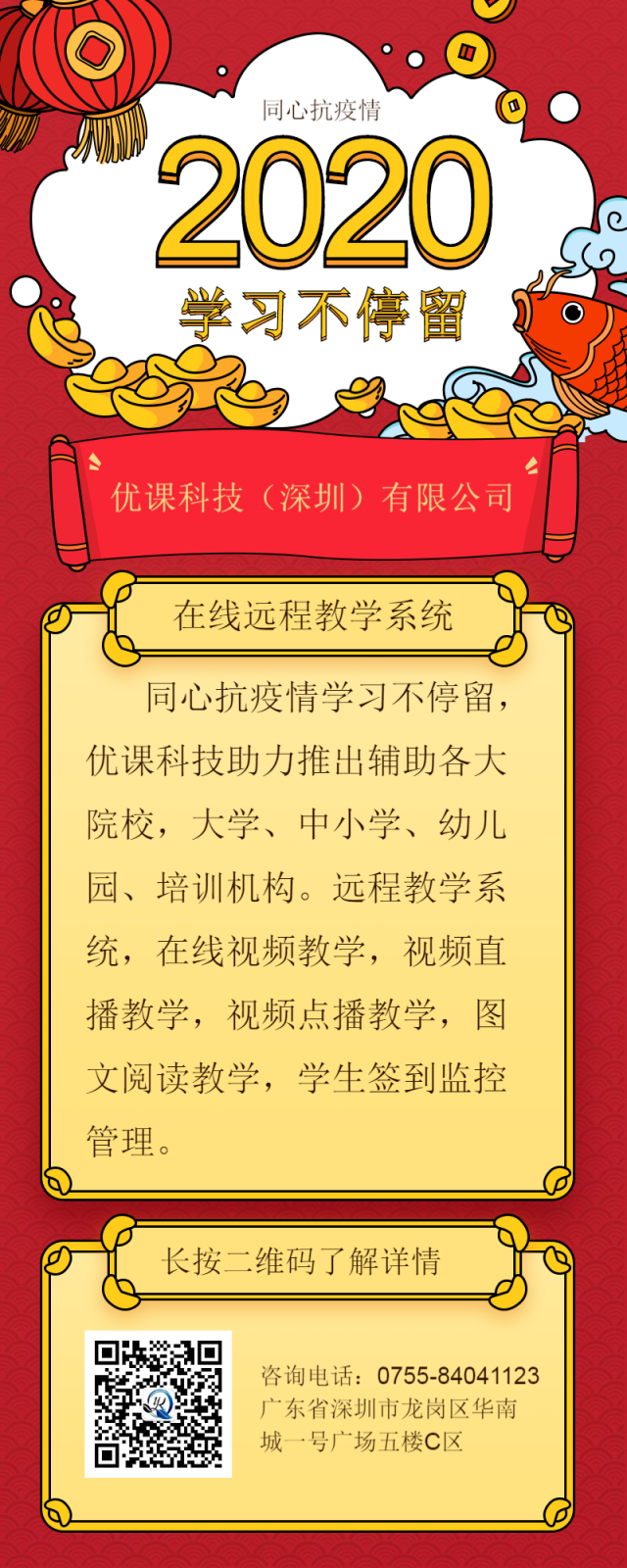 同心抗疫情學(xué)習(xí)不停留,優(yōu)課科技助力推出輔助各大院校,大學(xué)、中小學(xué)、幼兒園、培訓(xùn)機構(gòu)。遠(yuǎn)程教學(xué)系統(tǒng),在線視頻教學(xué),…